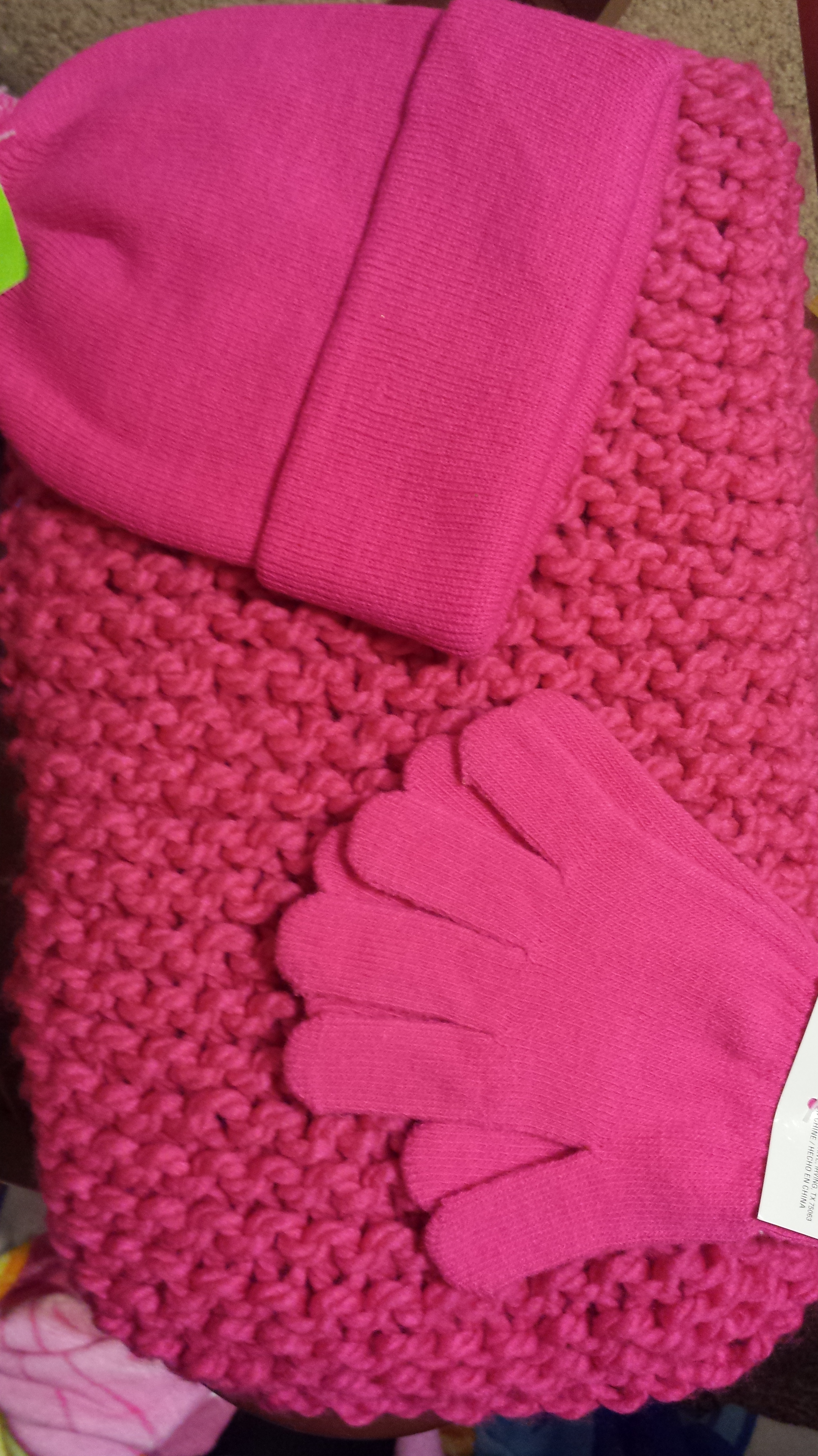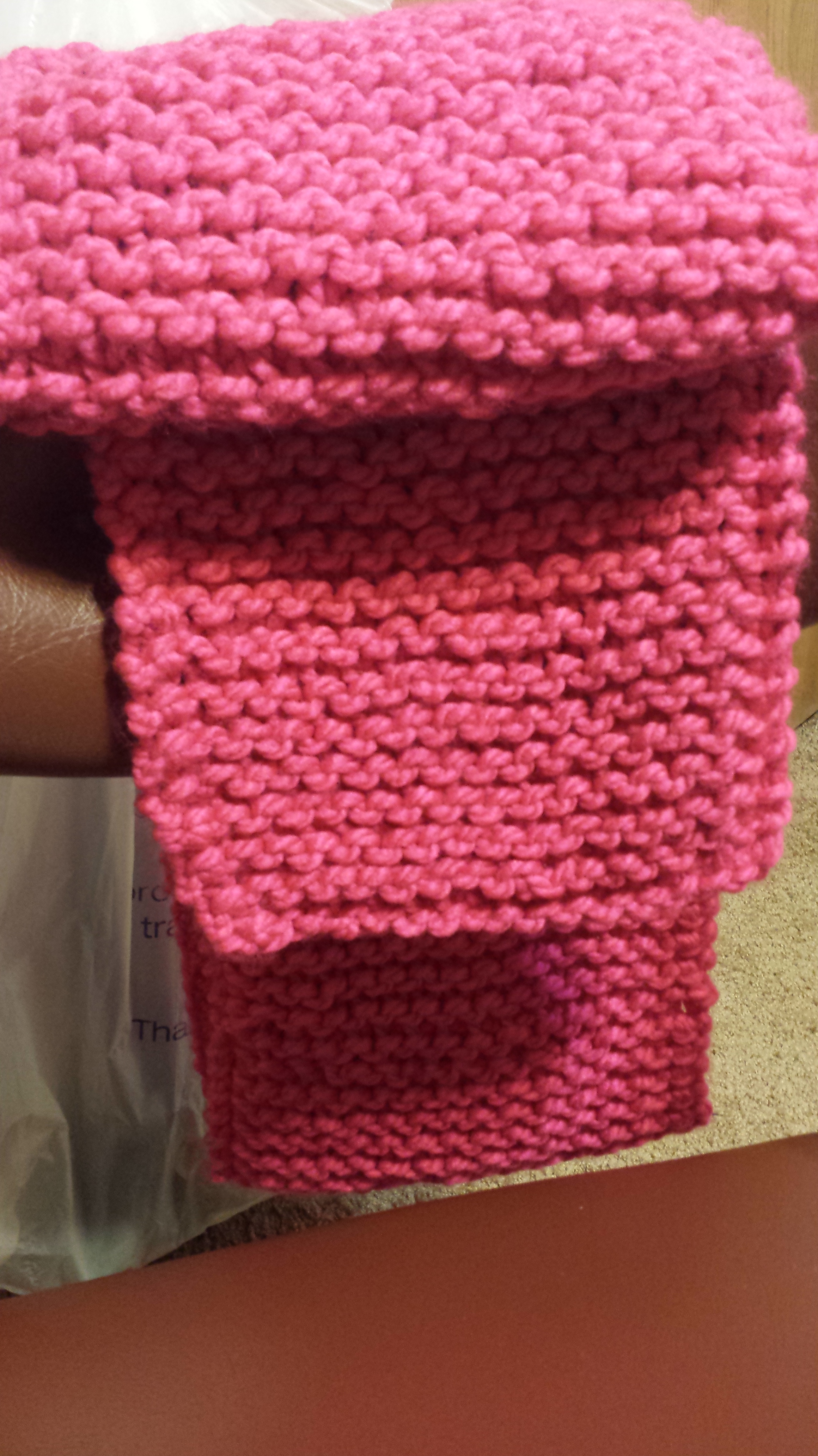Pink Scarf? Posted on December 10, 2014 by waregin777 Pink scarf. I made this for a charity drive for a senior, who requested a pink scarf, hat, and glove set. I bought the hat and gloves. The way I knit makes it look like there’s a border. There isn’t. I think it came out ok. SO PINK. Share this: Click to print (Opens in new window) Print Tweet Click to share on Reddit (Opens in new window) Reddit Share on TumblrPocket Click to email a link to a friend (Opens in new window) Email Like Loading... Related