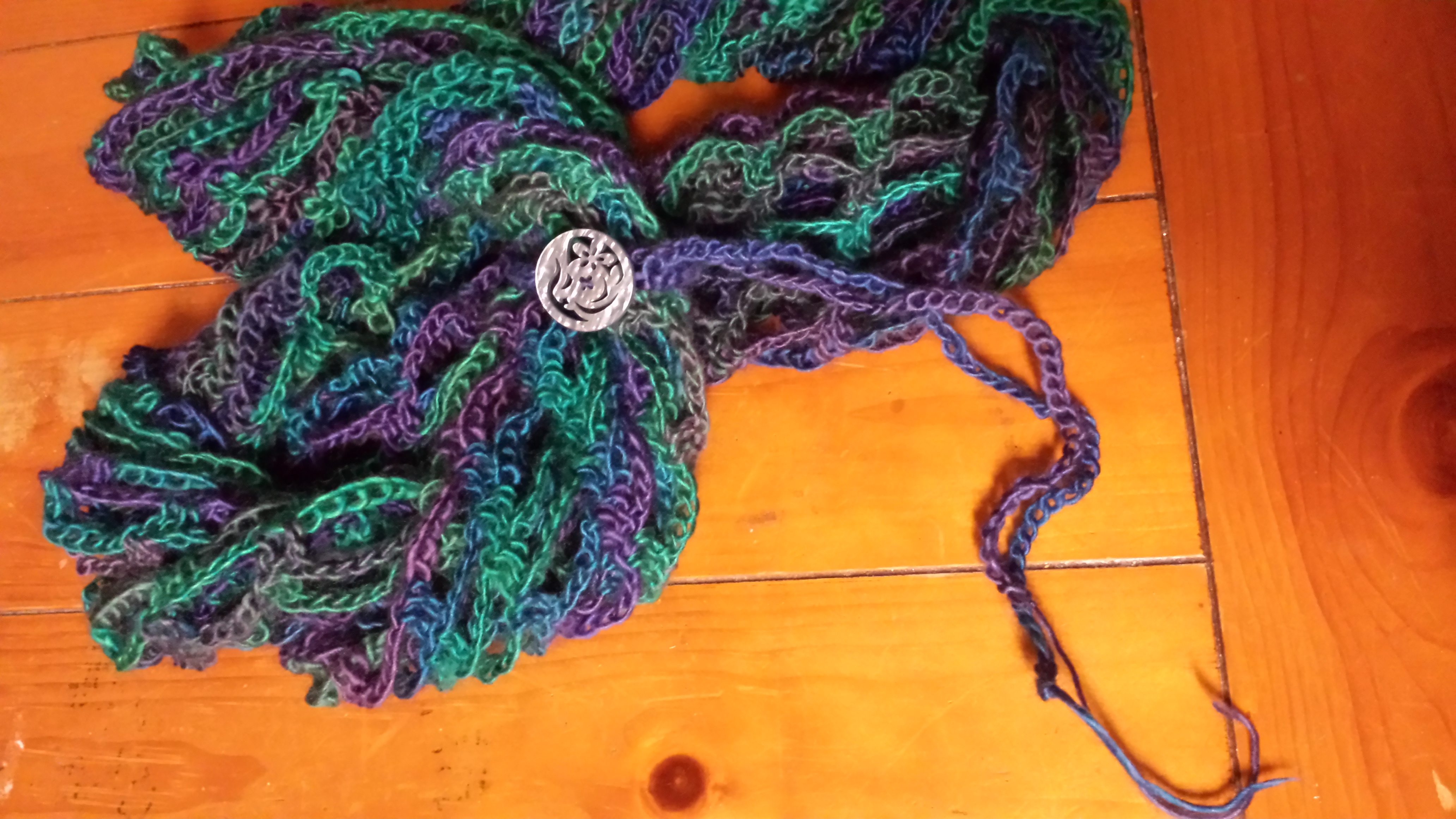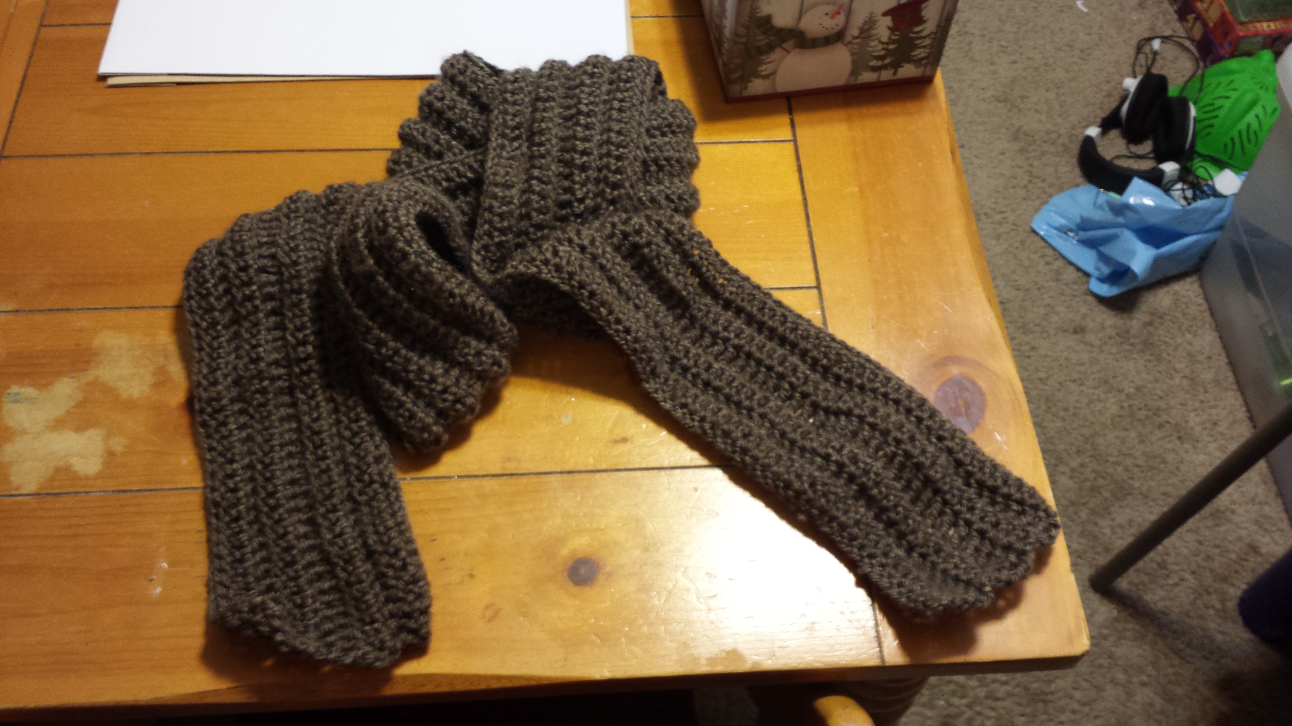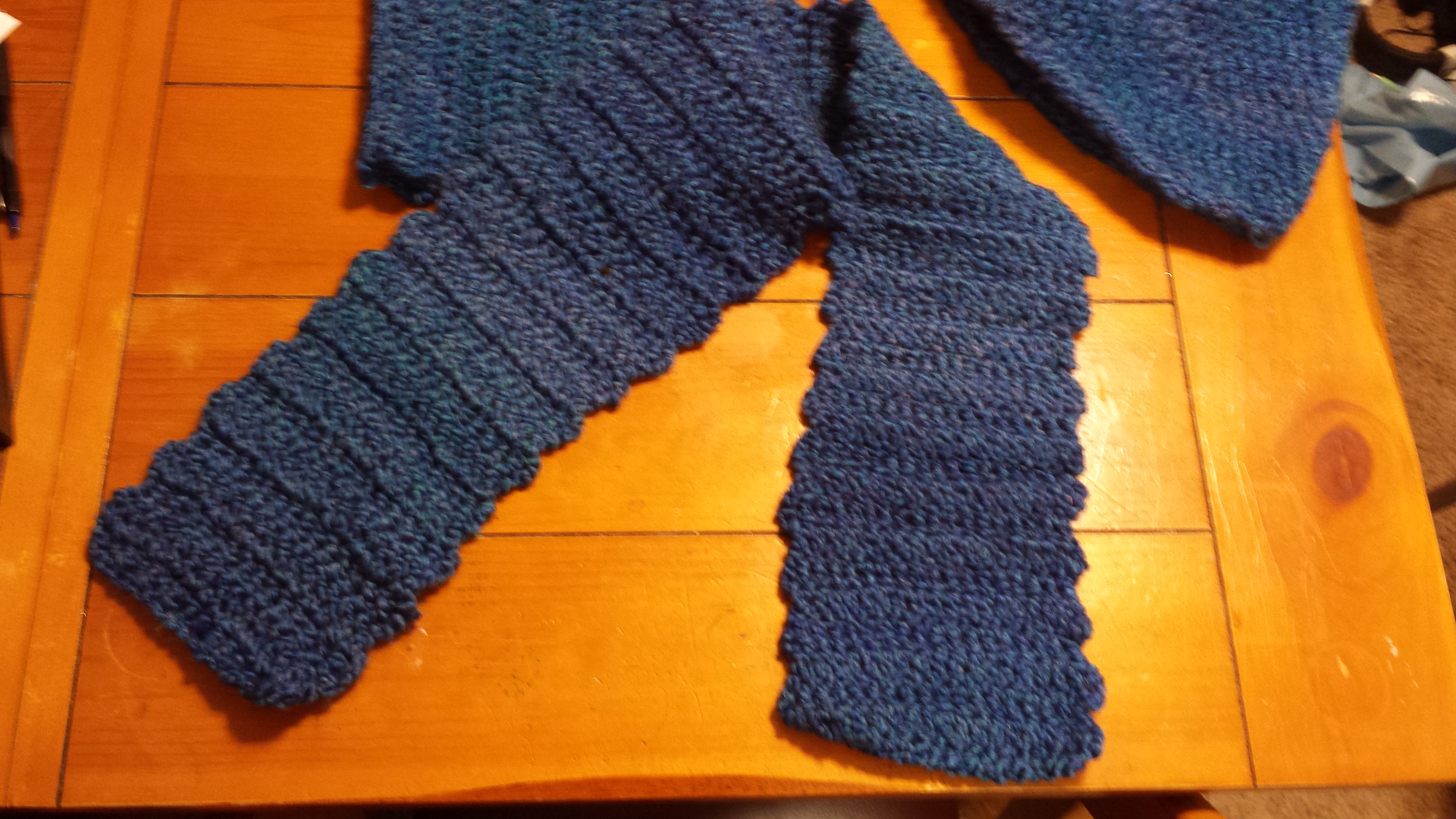 Pattern on ravelry. I turned the hat inside out because I thought it looked better that way. I hated working with this yarn, but it came out pretty nice, I think.This is just double crochet, over and over and over. I used a variegated yarn, so it looks pretty nice even though there is no real pattern.I liked this pattern so much, I made two. It’s called a Joseph’s scarf, and is on ravelry here.This is the other Joseph’s scarf.I love this color, and I’m a fan of this pattern, which you can find on ravelry here. However, I did not find it to be very well-written, and I had to study the pictures to figure out what to do.Here is another scarf I made of the same pattern, this time with a variegated yarn. I think this particular pattern is better with a solid color, but it turned out alright.This pattern is called the Artfully Simple Infinity Scarf. I think it came out nicely, although twistier than I would have hoped. If I do the pattern again, I’ll be aware of that and act accordingly.