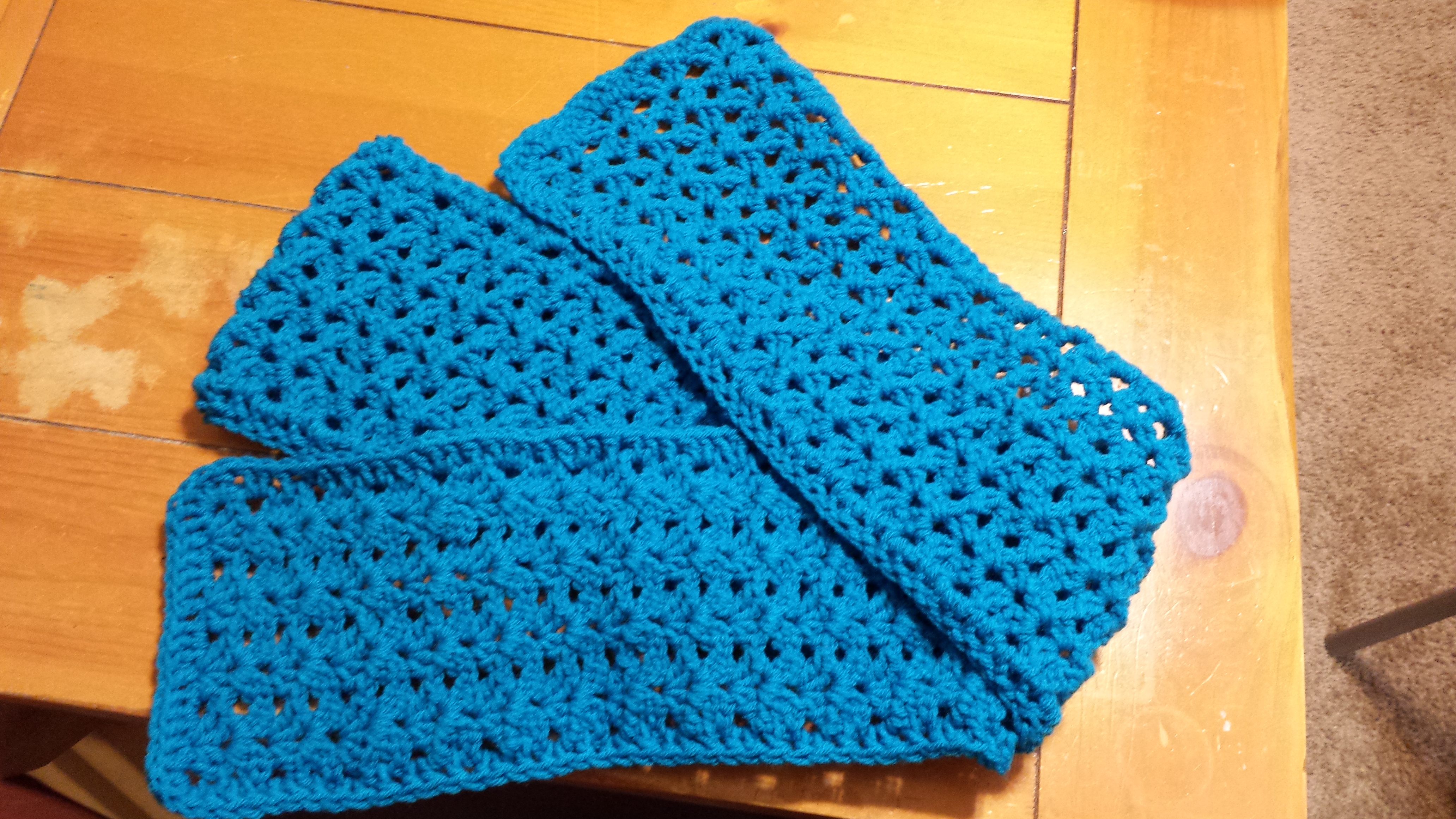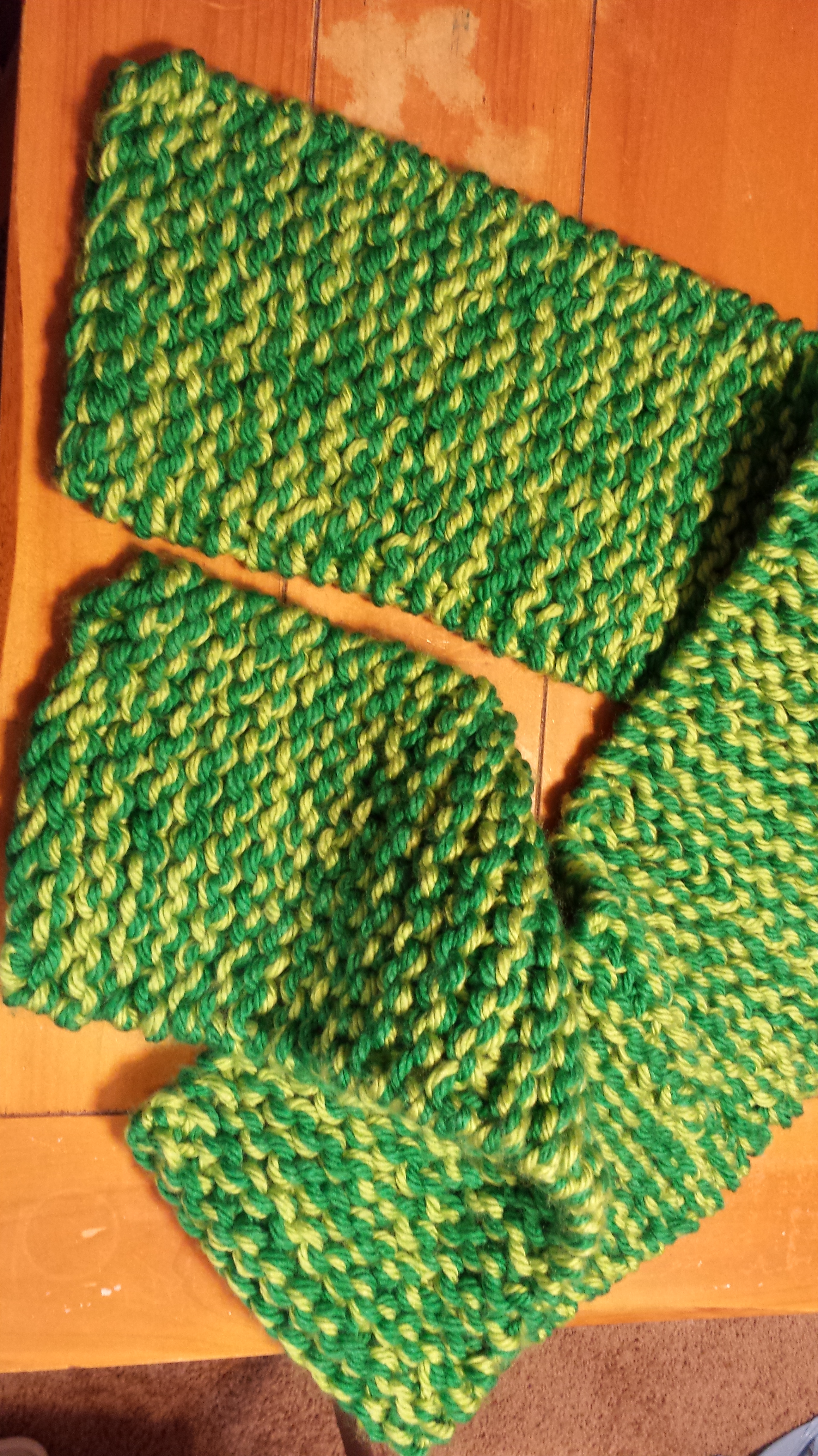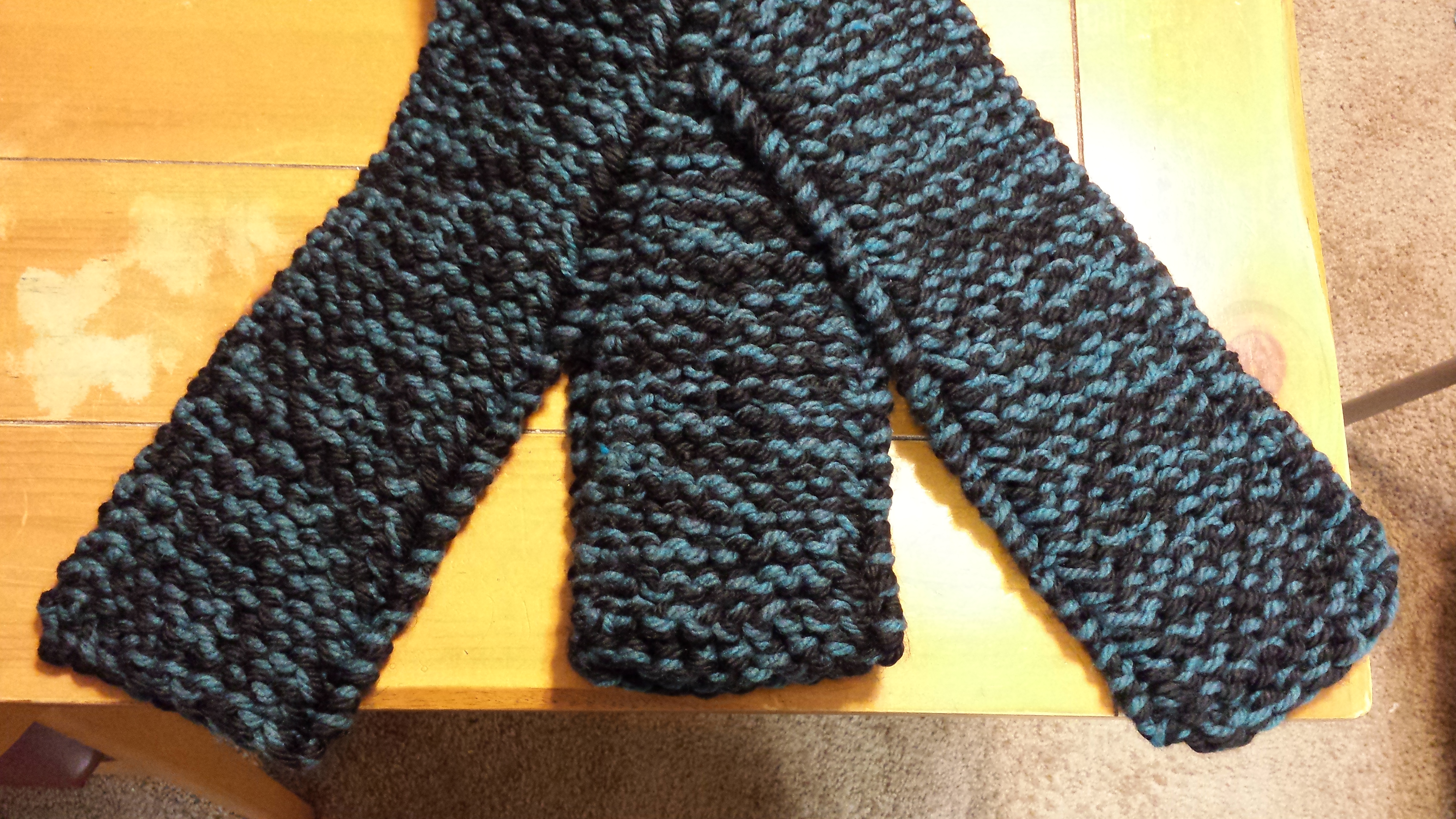 The picture of course does not show it well, but these are two shades of red.Blue and blue!Green and more different green.Black and teal. You may have noticed, but I did change the width for some of these scarves. Patterns are just a starting point!And finally, blue and gray.